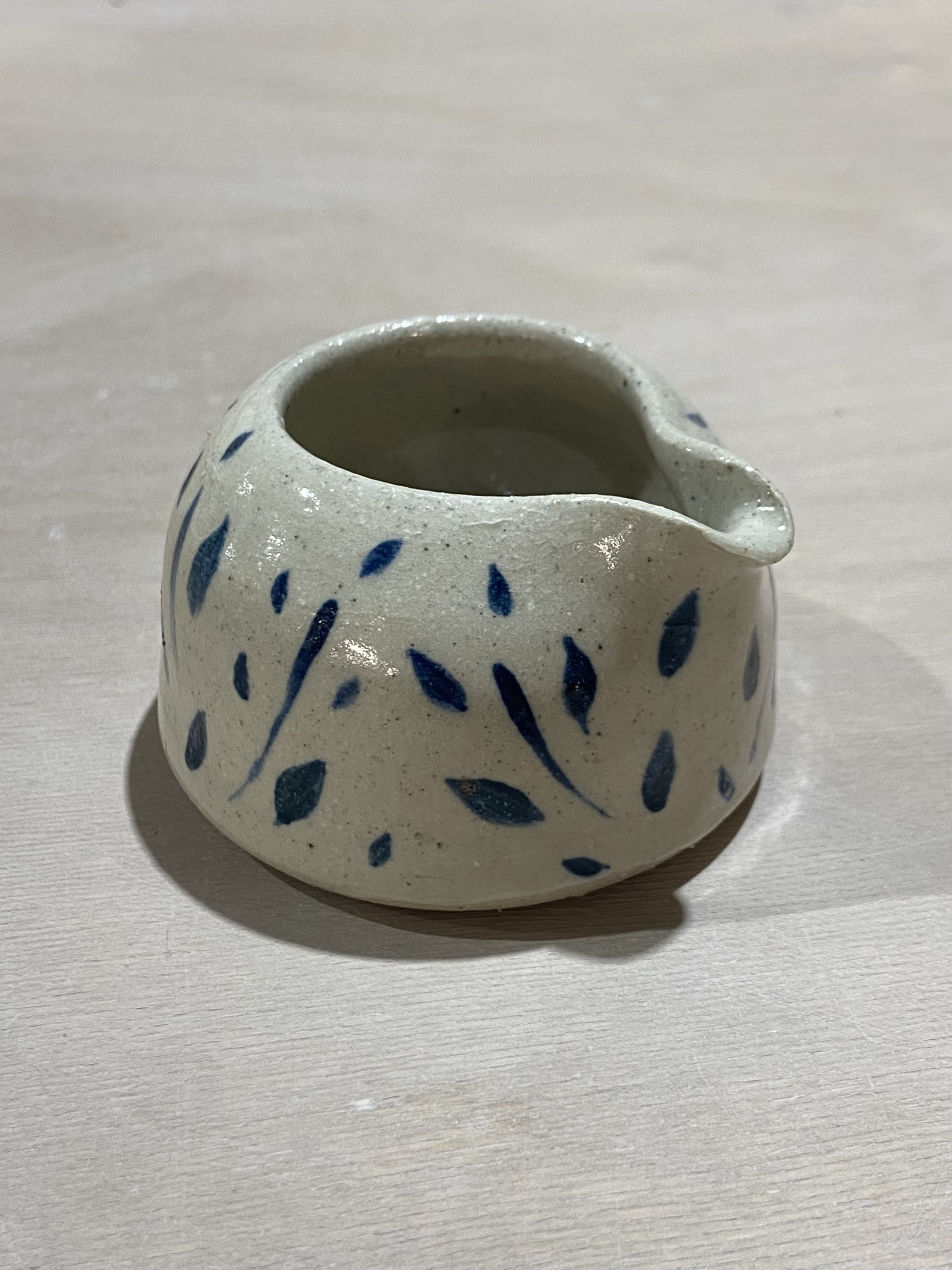 Hand painted small jug, glazed in transparent glaze. Perfect for holding dressing sauces or as an ornamental piece.